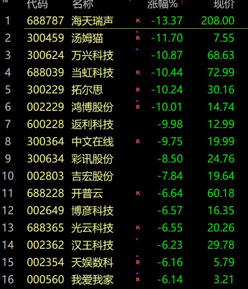 而AI概念股则全线走低。海天瑞声、汤姆猫、中文在线、万兴科技、当虹科技等多股跌超10%。