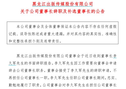 刚刚,龙版传媒发布公告表示,上述事项不会导致公司董事会成员低于法定最低人数,目前公司各项业务正常运转,该事项不会对公司生产经营造成重大影 响。