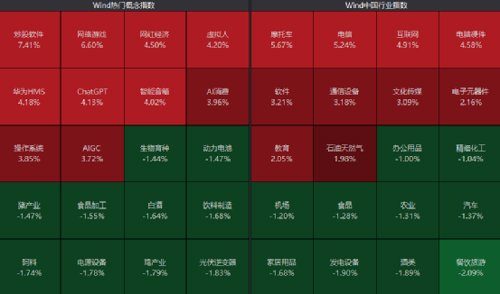 板块方面,AI概念继续活跃,传媒、游戏板块掀涨停潮,午盘券商股异动拉升;而大消费板块表现低迷,白酒、旅游、食品等跌幅居前。