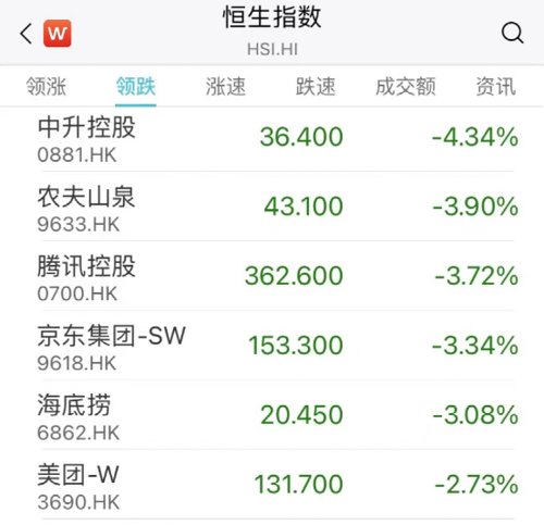 港股方面,三大指数均跌,恒生科技跌超1%。农夫山泉、腾讯、京东等跌幅居前。