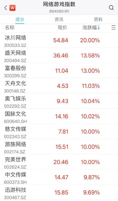 传媒、游戏板块掀涨停潮