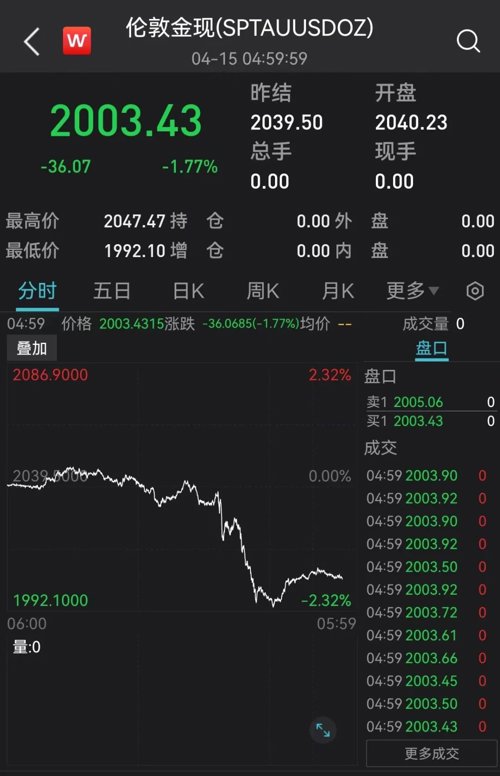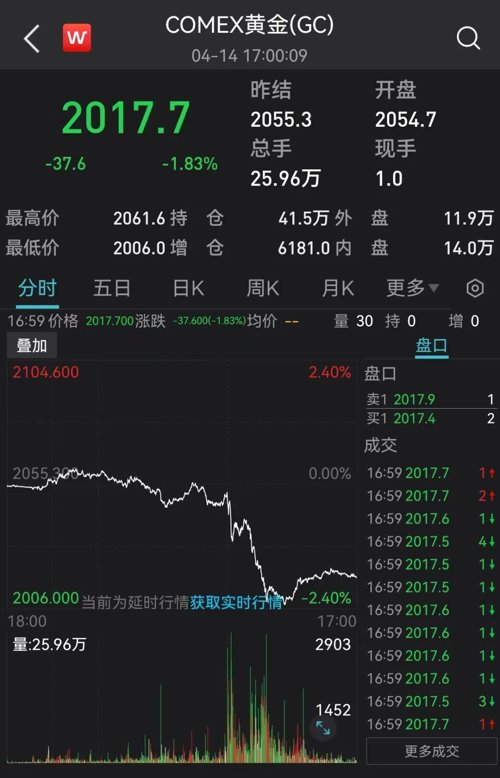 黄金价格大跌