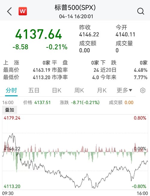 零售销售数据疲软显示经济正在失去动力,抵消了花旗等银行业财报超预期的积极影响,美股高开低走集体收低。截止收盘,道琼斯指数下跌144.38点,跌幅0.42%报33885.31点;标普500指数下跌8.67点,跌幅0.21%,报4137.55点;纳斯达克综合指数下跌42.81点,跌幅0.35%,报12123.46点。道指本周累涨1.19%,纳指本周累涨0.29%,标普500指数本周累涨0.79%。