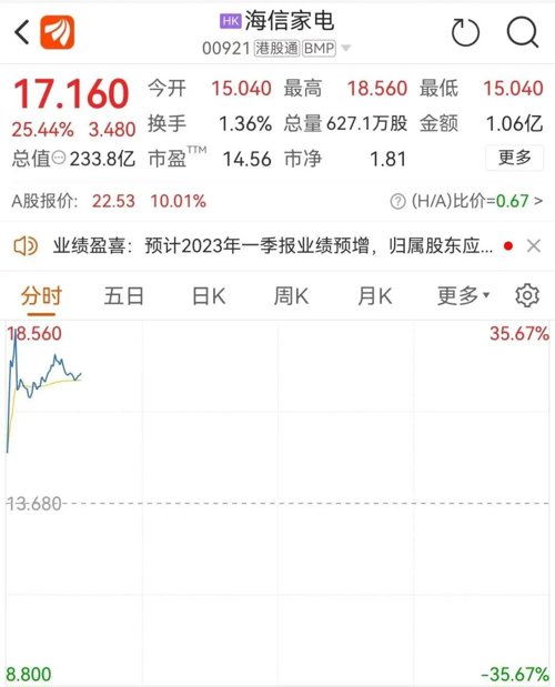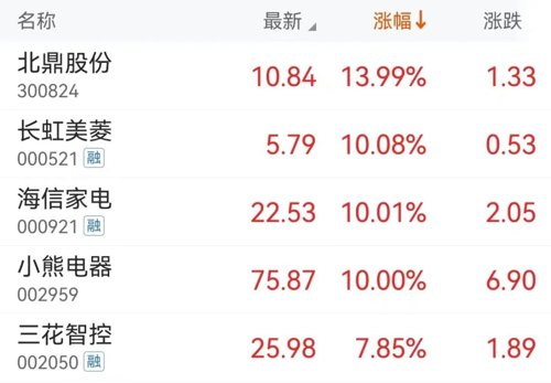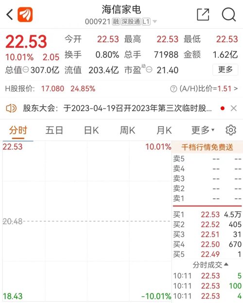 A股海信家电则一字涨停。