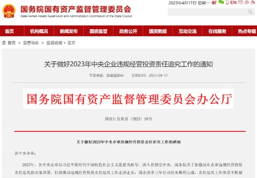 对于中央企业责任追究工作总体上开展还不平衡,部分企业存在不愿追责、不敢追责、不会追责的“三不”问题,国资委于4月17日发布《关于做好2023年中央企业违规经营投资责任追究工作的通知》,对此作出具体部署。