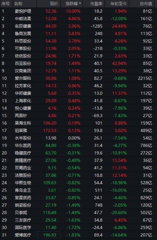 不过,千亿市值爱美客跌超2%,复星医药、华东医药、华熙生物、贝泰妮等下跌。