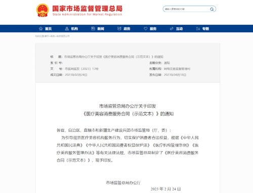 为规范医疗美容服务行为,促进医疗美容行业规范健康持续发展,维护消费者合法权益,4月18日,市场监管总局办公厅制定发布了《医疗美容消费服务合同(示范文本)》(以下简称示范文本)。