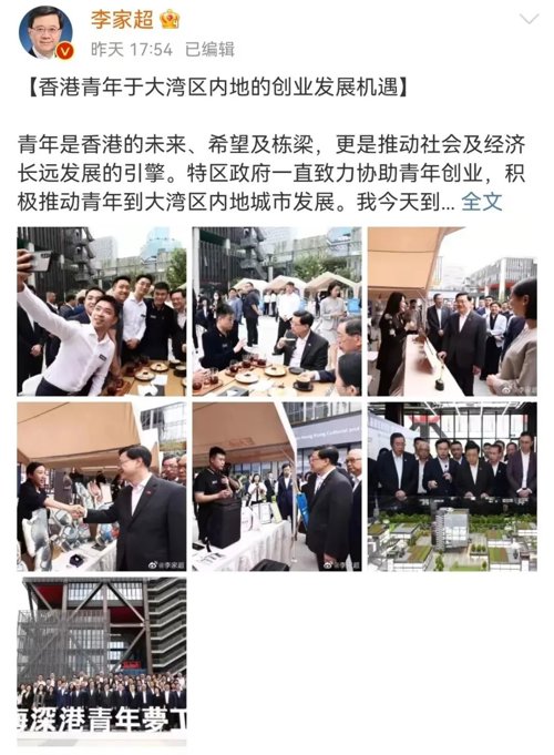 22日下午,李家超在参观前海深港青年梦工场时更是表示:香港和深圳是兄弟城市,不仅有兄弟情,还有兄弟貌。第一深圳和香港都具有融合性、包容性;第二个是都推动创新科技发展;第三个是深港都是圆梦的地方。现在有了大湾区,香港可以圆梦的地方更大了。