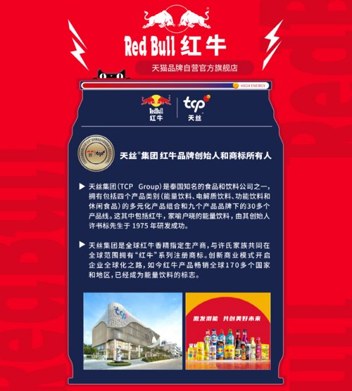 基金君发现,目前,红牛天猫旗舰店首页醒目地标注出天丝集团、红牛品牌创始人和商标所有人的信息。
