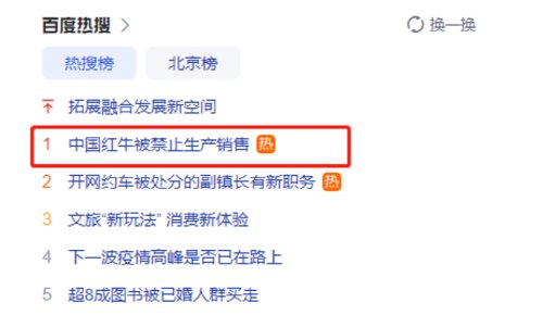 随后,“中国红牛被禁止生产销售”的话题冲上热搜。对此,中国红牛回应称,“这是虚假信息,中国红牛生产和销售一切正常。对于造谣引流、恶意抹黑等违法行为,中国红牛将及时取证,坚决依法追究责任。”
