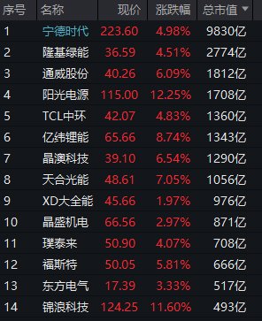 此外,宁德时代涨幅扩大至5%,亿纬锂能、隆基绿能、通威股份、TLC中环等行业权重集体回暖。