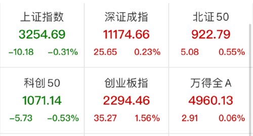 一起来看下上午市场行情。三大指数集体低开后一度翻红,早盘指数变现分化。截至上午收盘,沪指跌0.31%,深成指涨0.23%,创业板指涨1.56%。两市上涨个股超3200只。