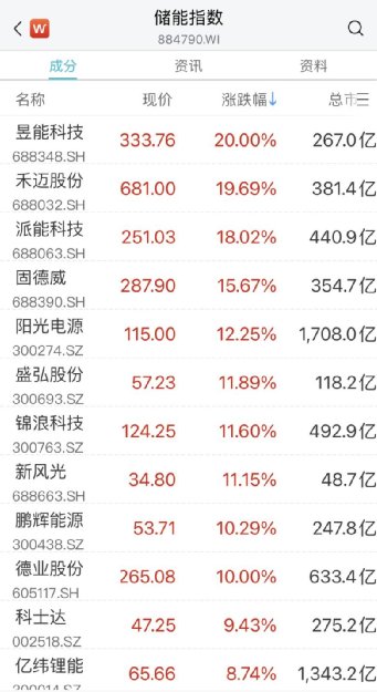 光伏、储能板块快速拉升,禾迈股份、派能科技涨超18%,帝科股份、固德威、阳光电源涨超12%,盛弘股份、锦浪科技、新风光、金盘科技等跟涨,科士达、钧达股份、联泓新科、德业股份等多股涨停。