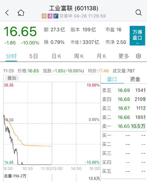 AI算力方向全线回落,工业富联闪崩跌停,成交额超20亿元。