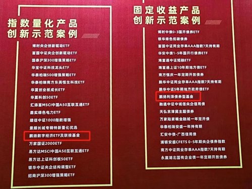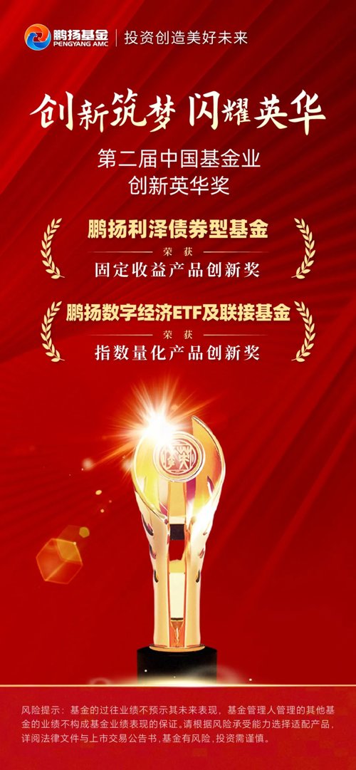 在中国基金业25周年之际,《中国基金报》举行五年一度的“中国基金业创新英华奖”(第二届)评选。鹏扬基金旗下鹏扬利泽债券、鹏扬数字经济ETF及联接分别获得固收类、指数类的两大创新产品奖。