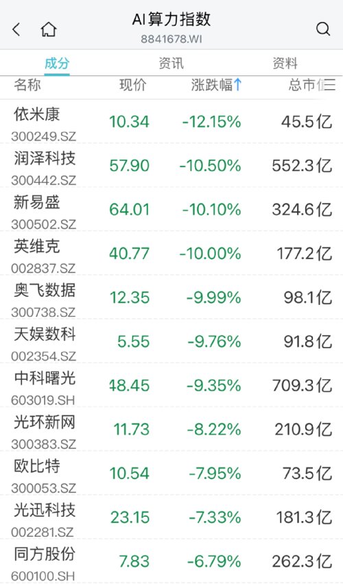 AI算力板块持续回调,英维克闪崩跌停,依米康、润泽科技、新易盛、奥菲数据等大跌。