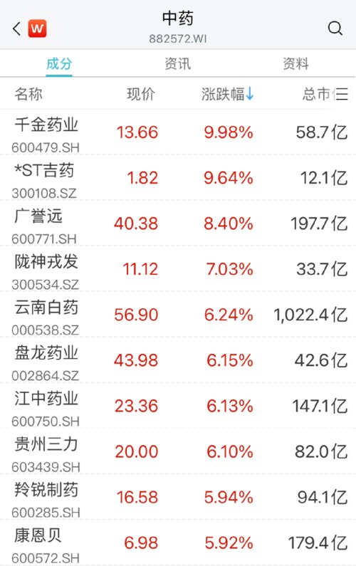此外,千金药业涨停,广誉远、陇神戎发、盘龙药业、江中药业等跟涨。