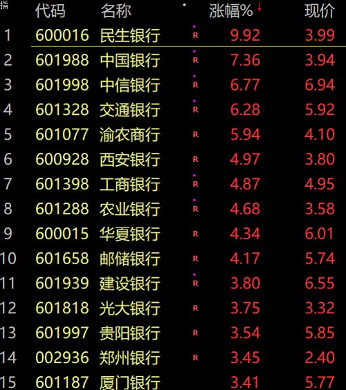 今天市场最大的亮点,就是大金融板块暴涨。民生银行午后涨停,中国银行、中国太保、长江证券涨超7%。