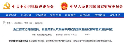 据中纪委最新消息, 浙江省政协党组成员、副主席朱从玖涉嫌严重违纪违法,目前正接受中央纪委国家监委纪律审查和监察调查。