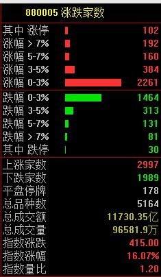 今天沪指低开高走,午后一度涨近1%,创业板指则跌超1%。截止收盘沪指涨0.82%,深成指跌0.57%,创业板指跌1.16%。两市共2997只个股上涨,102只个股涨停,1989只个股下跌。