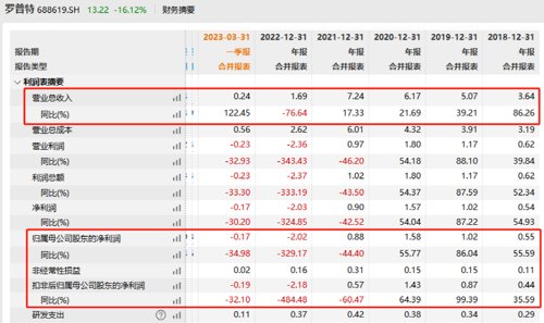 被称为视觉领域“小巨人”的罗普特,近来业绩表现却不稳定。2022年年度报告,该公司年度实现营业收入1.69亿元,同比下降76.64%;归母净利润亏损2.02亿元,同比由盈转亏。另外今年一季度,罗普特实现营业收入2426.53万元,同比增长122.45%;但归母净利润亏损1719.68万元,同比下降34.98%。