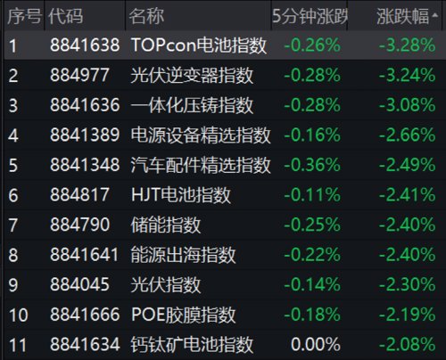 新能源各板块表现不振,光伏领跌市场。