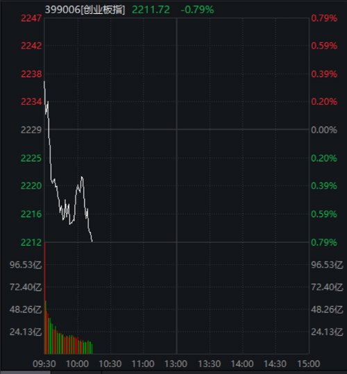 今日上午亚太股市开盘表现良好,大A股也不例外:上证指数高开0.23%,深证成指涨0.3%,创业板指涨0.35%。上午上证指数震荡走高,创业板指则持续下挫,继续创下新低。