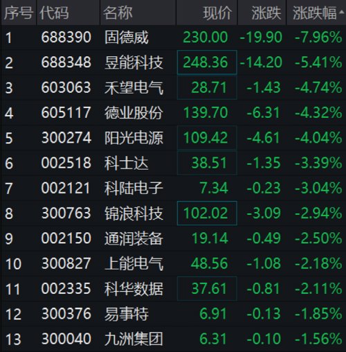 固德威跌超8%,昱能科技、德业股份、阳光电源、锦浪科技等权重股跌幅居前。