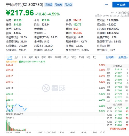 开盘后,早间市场震荡分化,创业板指迅速走低,宁德时代一度跌超5%。截至发稿,上证指数震荡翻红,创业板指跌幅仍超1%。