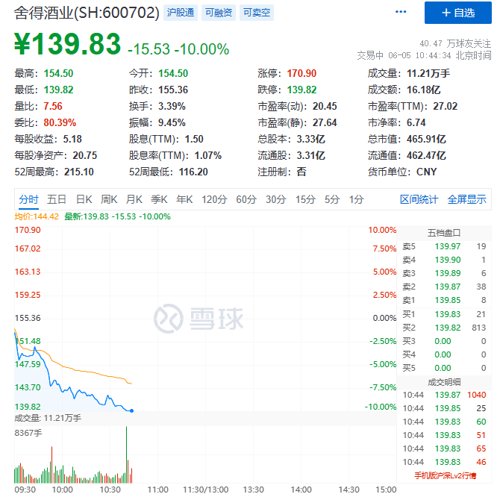 上午近500亿元市值的舍得酒业放量大跌,盘中封住跌停板;白酒股普遍回调,古井贡酒、酒鬼酒跌超3%,泸州老窖、老白干跌超2%。