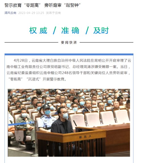 根据云南中烟官网消息,今年以来公司已多次组织廉洁教育工作。如今年3月,公司发布《加强廉洁教育 大力推进“清廉云南中烟”建设》组织公司本部90余名党员到云南省反腐倡廉警示教育基地开展一季度主题党日活动;今年5月,云南中烟又召开本部年轻干部廉政警示教育专题课暨党风廉政教育座谈会议,专项组织公司本部年轻干部观看了《莫以贪腐赌未来》、《莫让黄金期沦为高危期》等警示教育片。