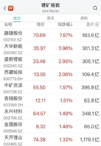新能源板块回暖,锂电池板块早盘反弹拉升,融捷股份大涨8%,天华新能、盛新锂能、中矿资源等跟涨。