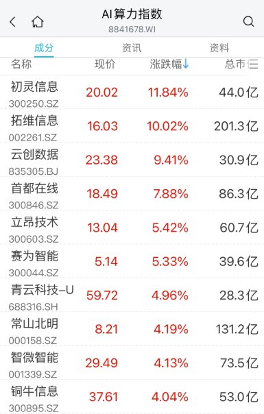 算力方向大幅异动