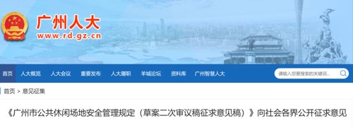 6月5日,广州市人大常委会官网发布了《广州市公共休闲场地安全管理规定(草案二次审议稿征求意见稿)》。目前该意见稿正现面向广大市民和社会各界公开征求意见和建议。