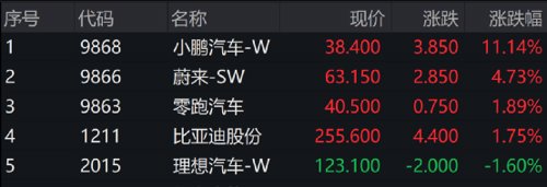 近期利好频出,6月12日新能源车多数上涨。小鹏汽车涨11.14%,蔚来涨4.73%,零跑汽车涨1.89%,比亚迪涨1.75%。