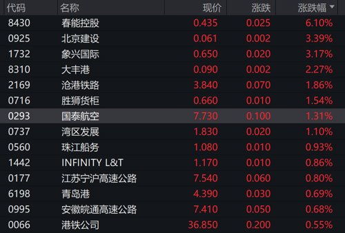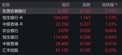 另一方面,航空股、香港银行股、电信股部分上涨,国泰航空、香港宽频逆势涨超1%。