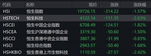 19日早盘,大型科技股全线下挫令大市承压明显。恒生科技指数跌2.63%,恒生指数跌超300点。