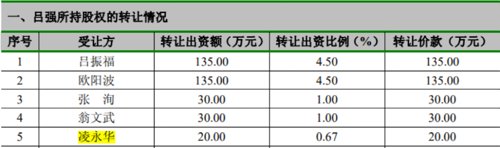 2008年4月,哈尔斯创始人兼实际控制人吕强,以20万元的价格,向凌永华转让了0.67%的出资比例。
