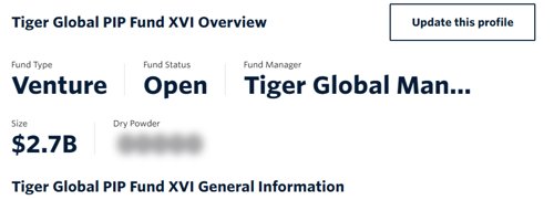根据PitchBook显示,老虎环球的新基金(Tiger Global Private Investment Partners XVI,PIP 16)完成首关。361个LP一共出资近27亿美元,这离此前的80亿美元的目标相去甚远。