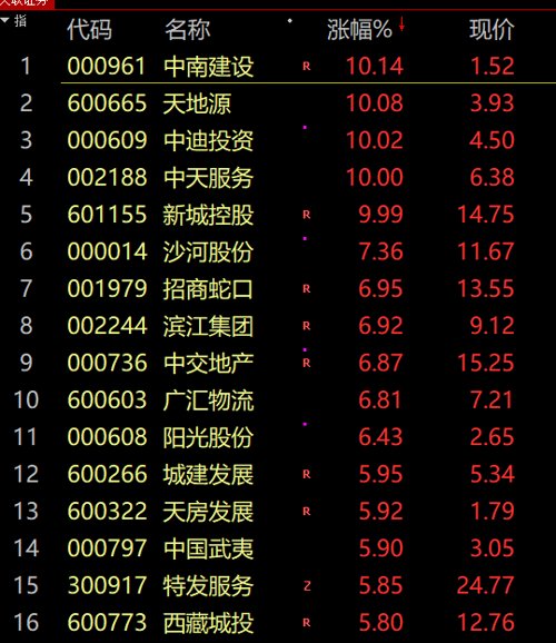 所以今天地产板块全部暴涨。