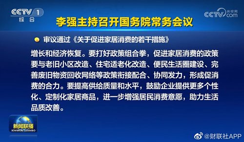 其中,备受市场关注的是,审议通过《关于促进家居消费的若干措施》!