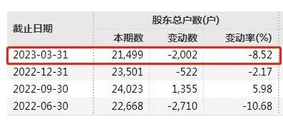 股东户数方面,截至今年一季度末,公司股东总户数有2.15万户,相较于去年年底减少了8.52%。