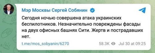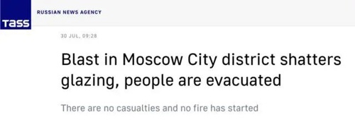 莫斯科市长谢尔盖·索比亚宁在Telegram发文称,两座办公楼的外墙受到轻微损坏,没有人在袭击中受伤。