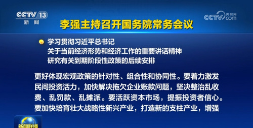 据央视新闻,李强主持召开国务院常务会议,其中提到: