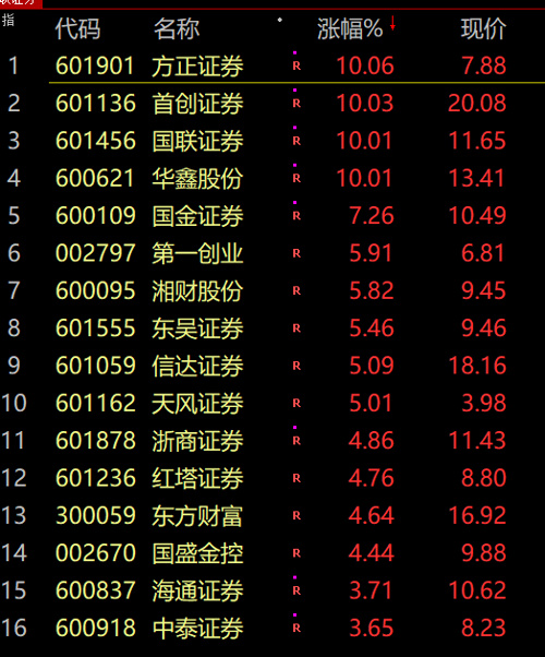 大金融股午后集体走强,券商股领涨,方正证券、首创证券、国联证券涨停。为什么牛市旗手券商股又暴涨?原因是。。。市场憧憬这两天会有一些利好出现。市场一直期待降印花税、优化交易制度等政策