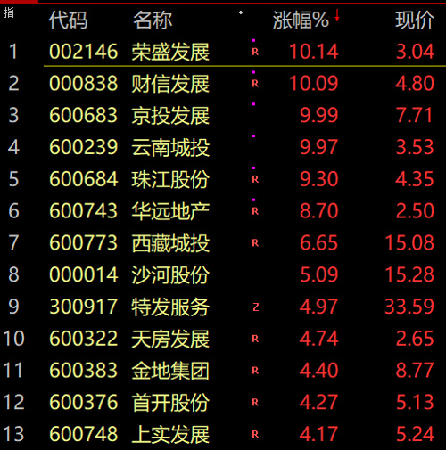 地产股再度走强。