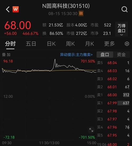 8月15日,固高科技登陆创业板,开盘暴涨525.0%,此后