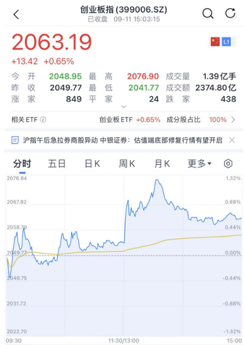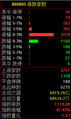 共3757只个股上涨,1338只个股下跌。