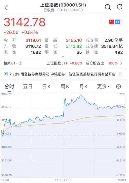今天,A股三大指数后集体拉升涨超1%,尾盘时候涨幅略有收窄。