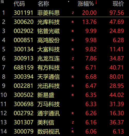 汽车、通信等涨幅居前。